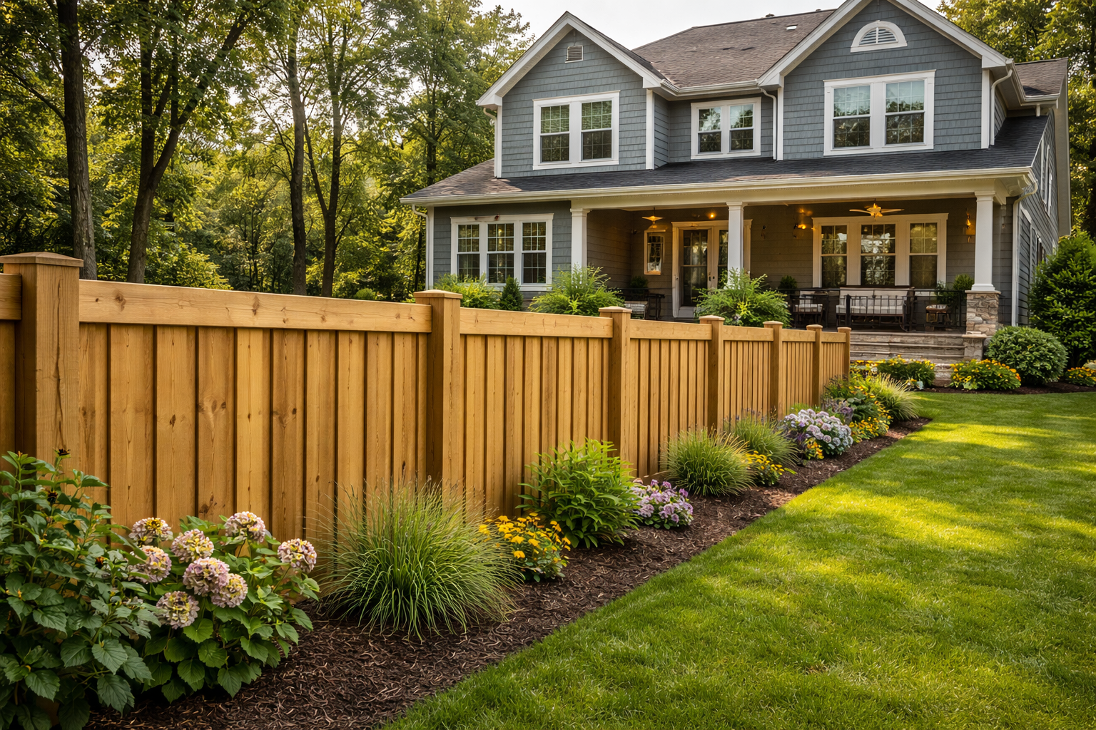 A classic pressure-treated wood fence that provides strength, privacy, and everyday reliability.